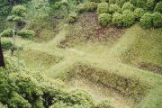 | ■山中城跡公園 戦国時代末期の永禄年間(1560年)に小田原に本城をおいた北条氏が築城しました。400年前の遺構がそのまま復元されている石を使わない土だけの山城は、全国的にも非常に珍しいものです。 |